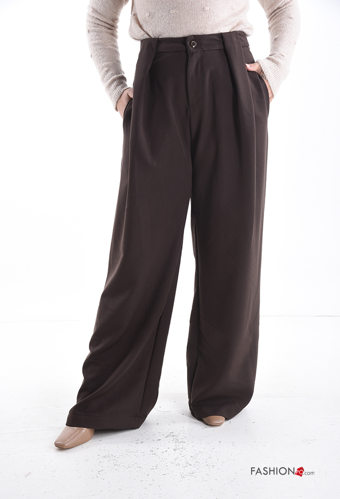Home > Roupa > Calças > Calças wide leg com bolsos com botões com fecho