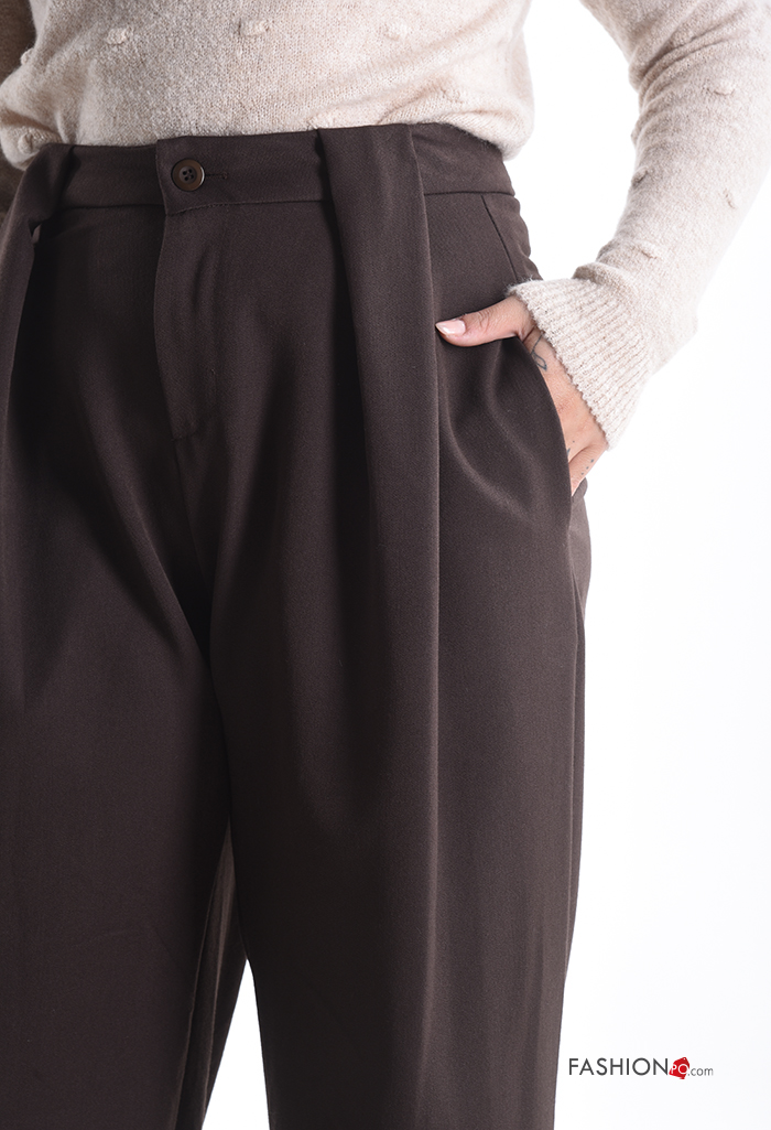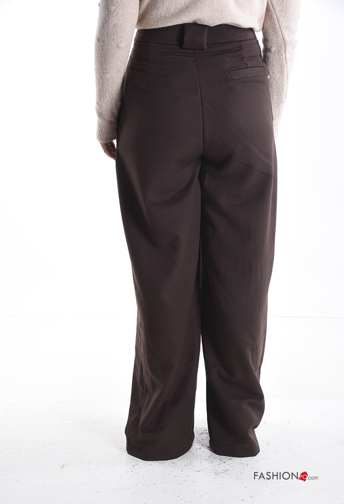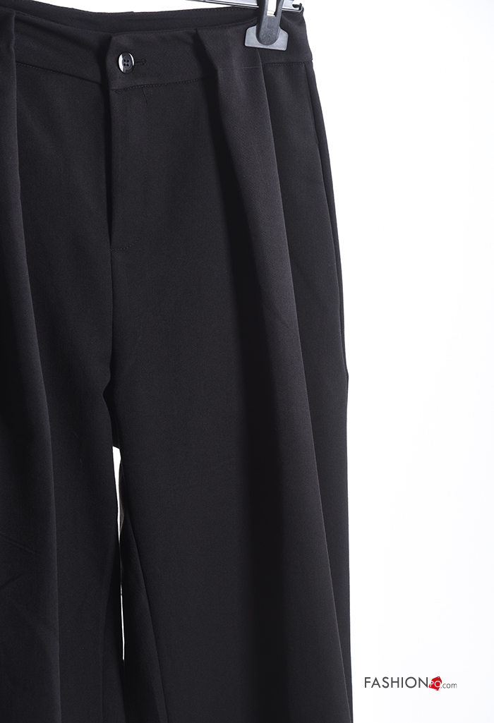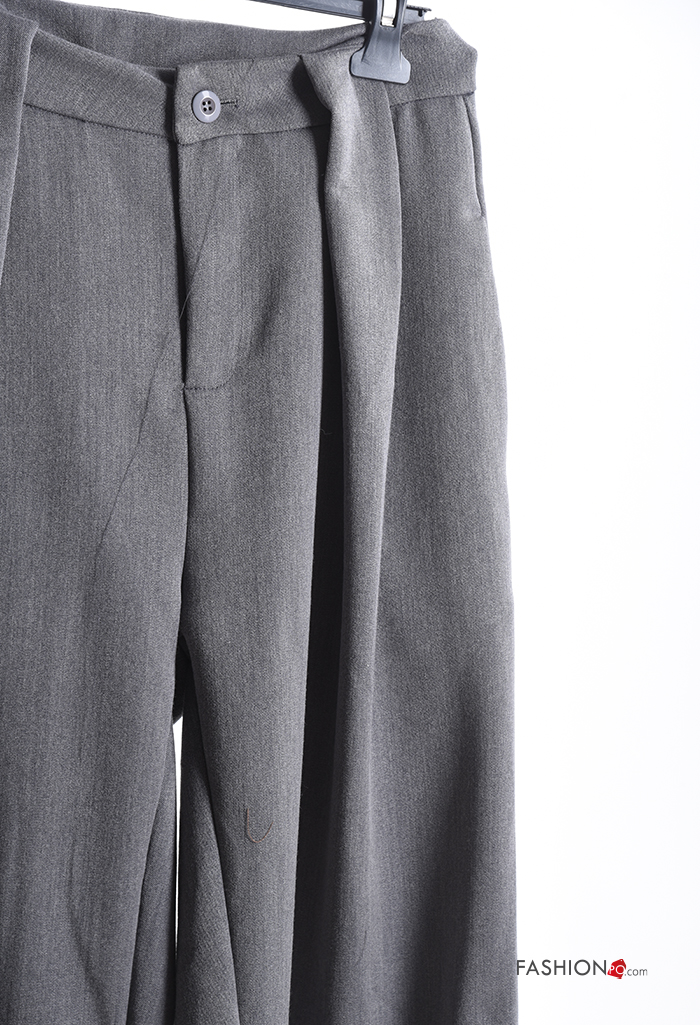 Calças wide leg com bolsos com botões com fecho