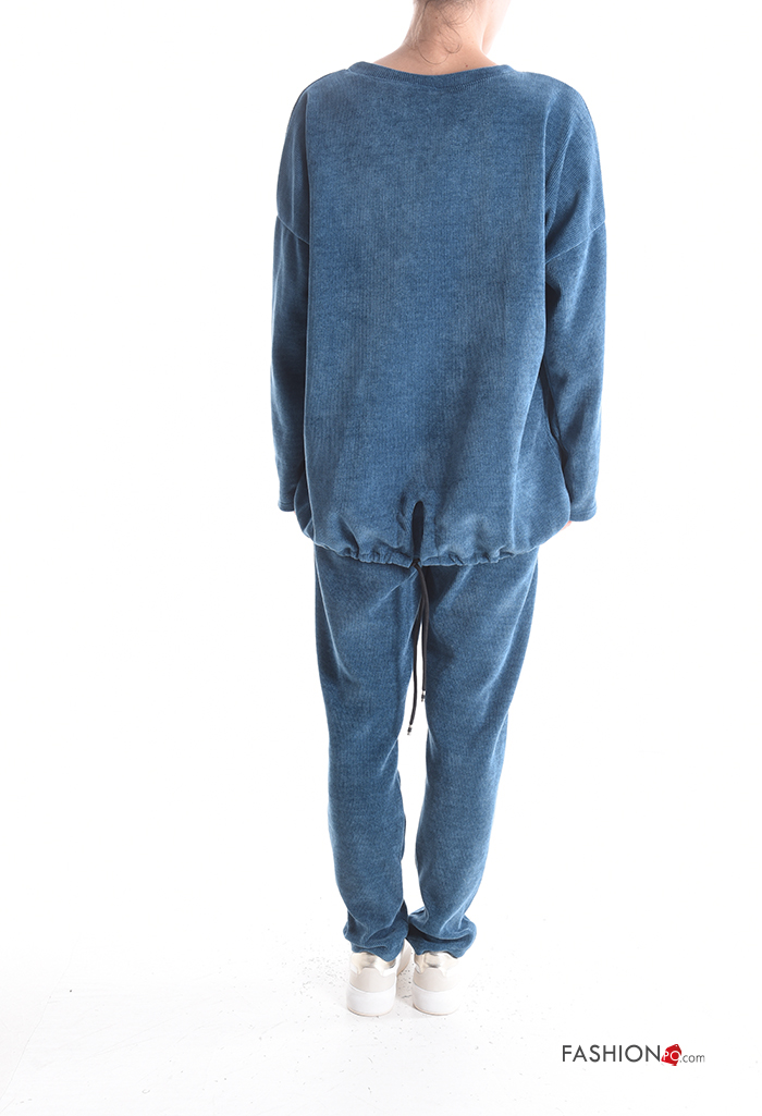 Conjunto manga comprida gola redonda com bolsos com cordão com elástico