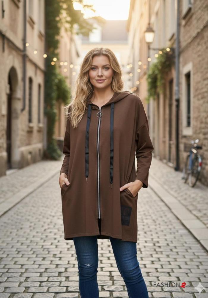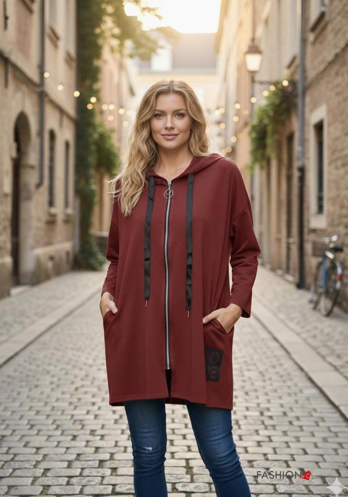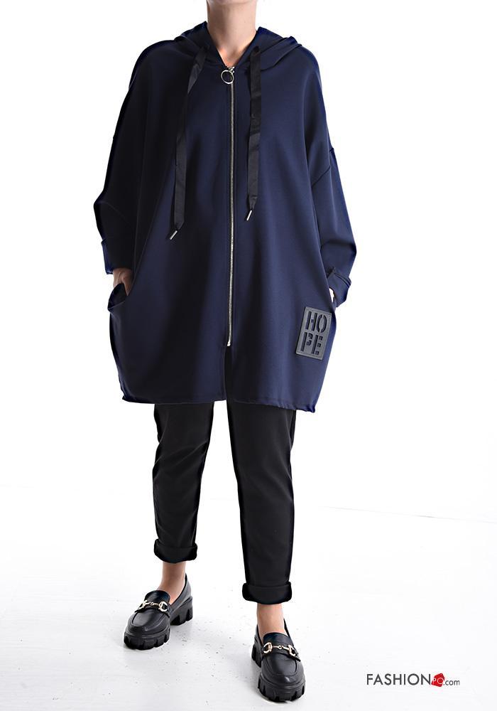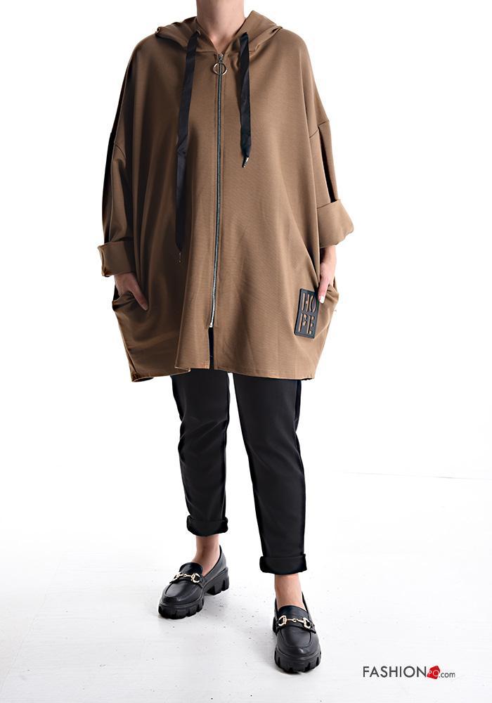 Sweatshirt em Algodão com fecho com bolsos com capuz