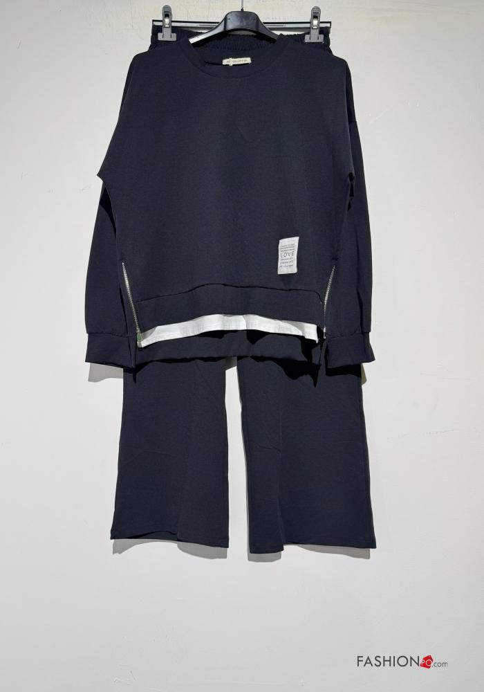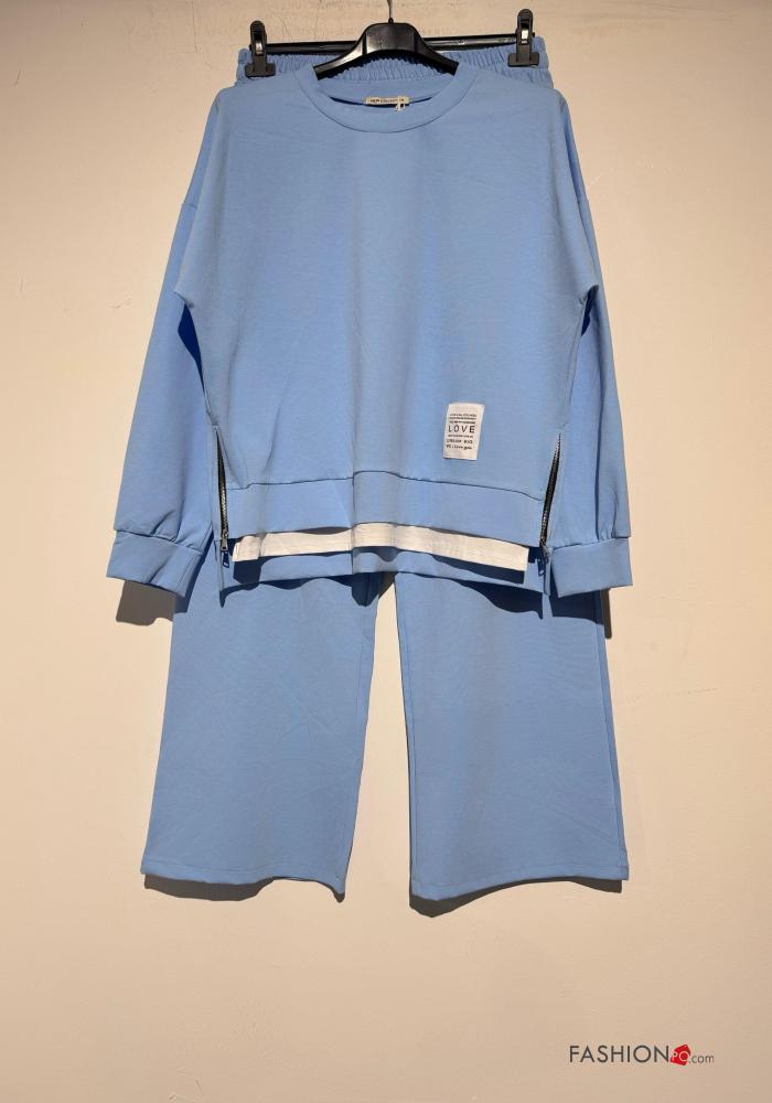 Fato de treino em Algodão manga comprida gola redonda com bolsos com elástico
